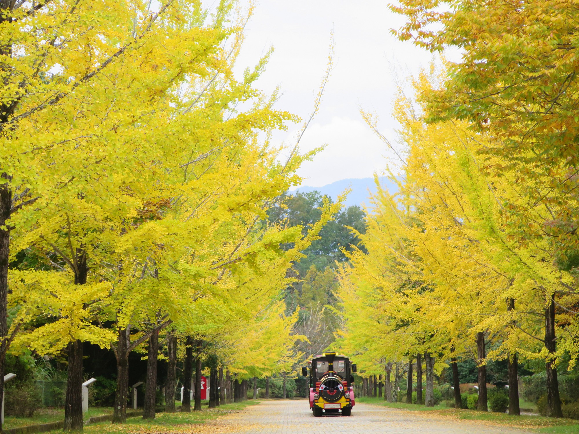 黄葉のトンネルの中をのんびりと散策したり、スカイトレインに乗車して眺めてみたり、秋の風情を楽しむことができます。