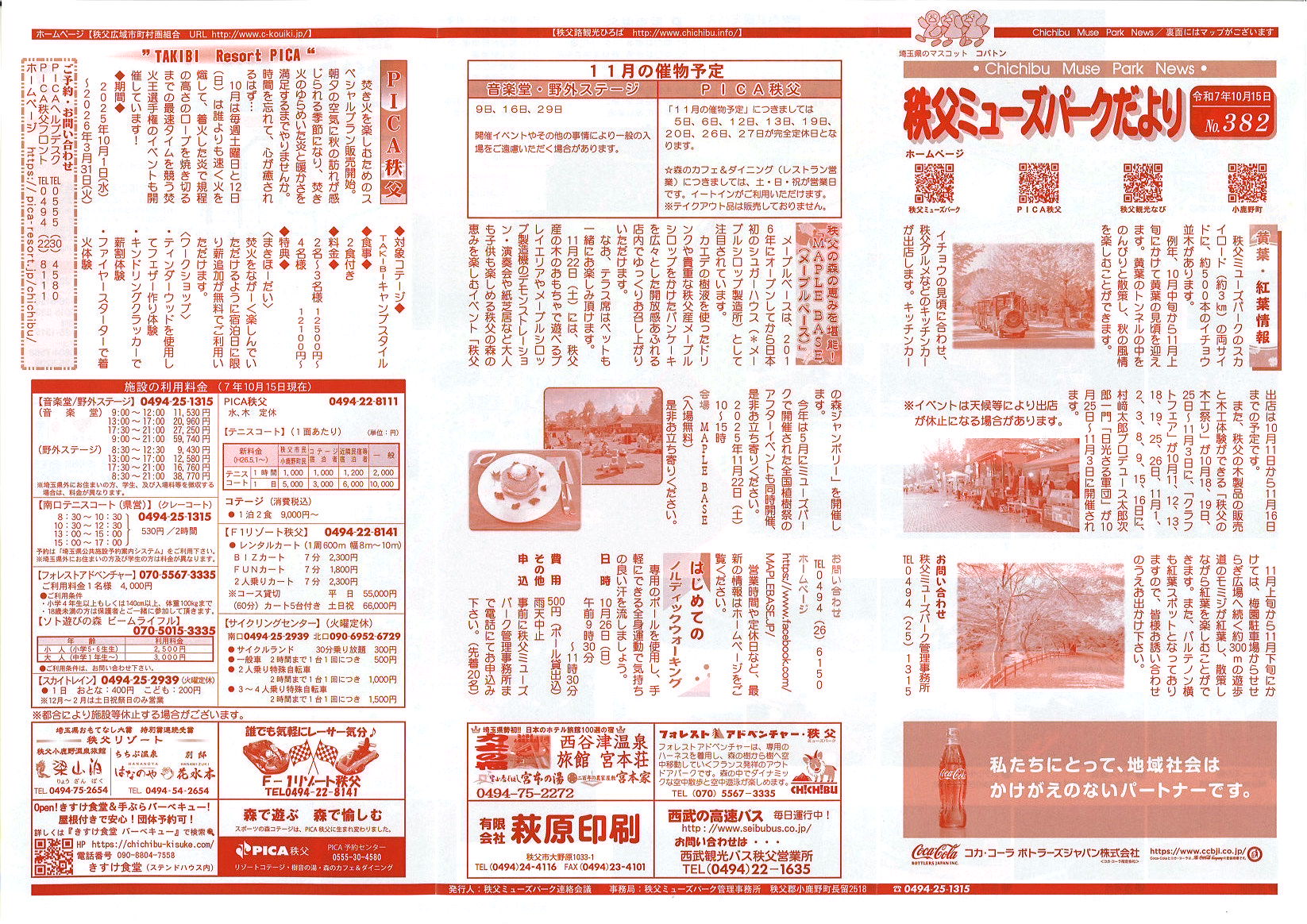 申 込 事前に秩父ミューズパーク管理事務所まで電話にてお申込み下さい。(先着20名)