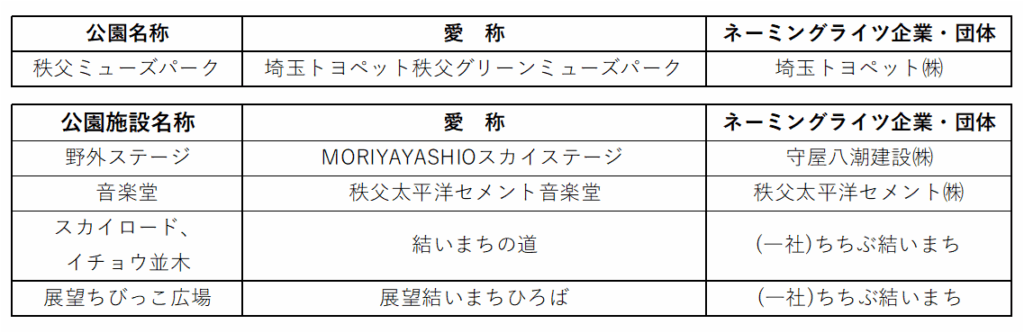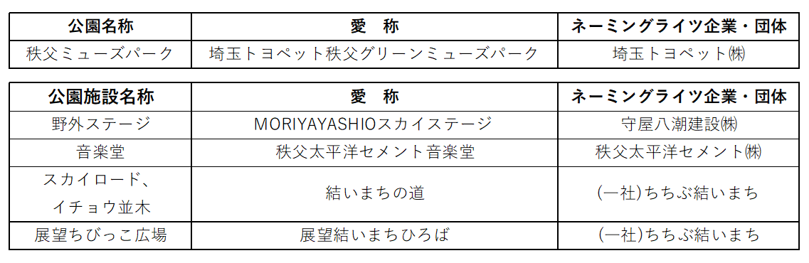 秩父ミューズパークの愛称が変わります。